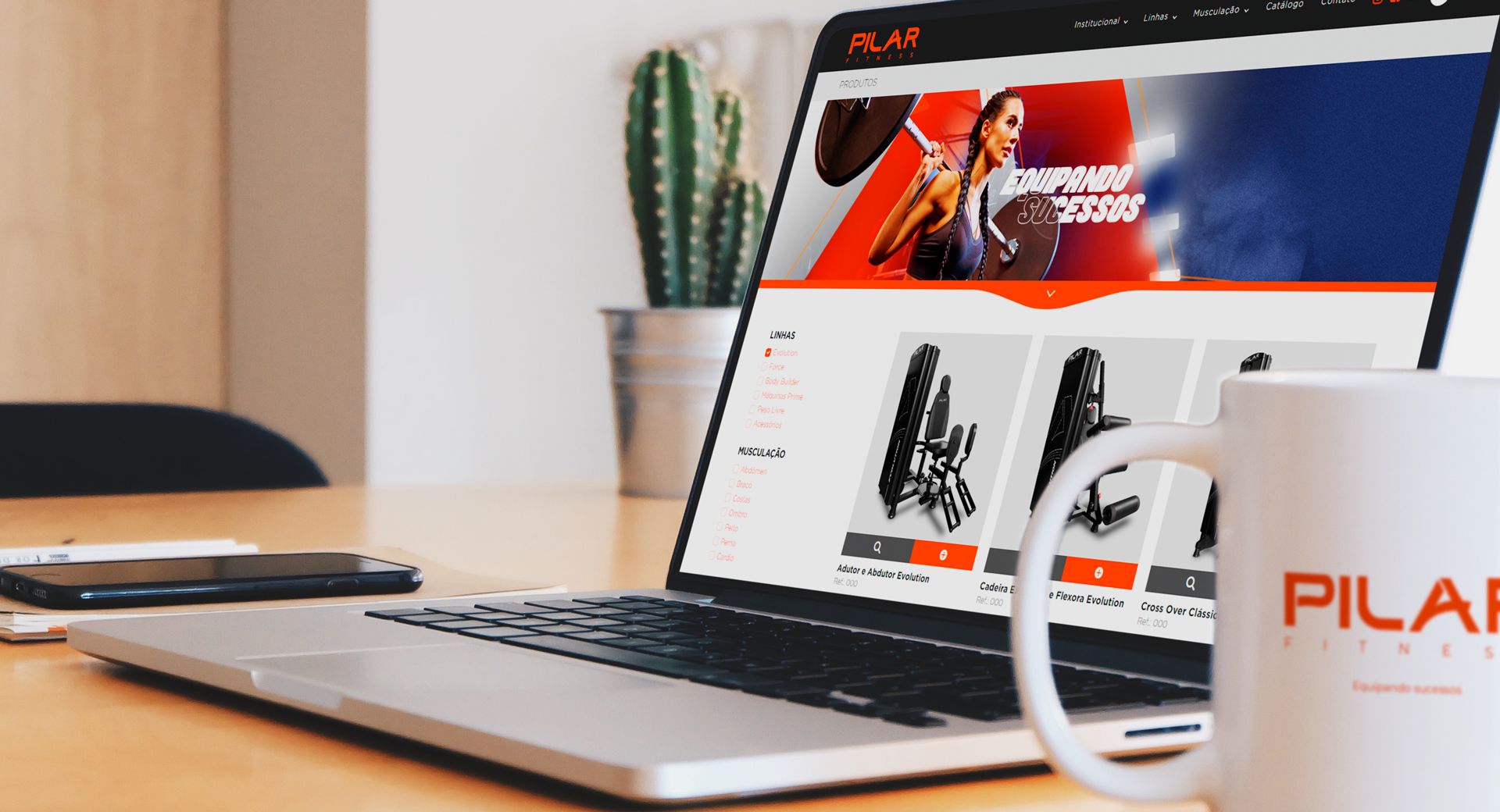 Desenvolvemos também o novo site da Pilar Fitness onde os clientes podem escolher os equipamentos, montar seu carrinho e solicitar o orçamento com muito mais rapidez.